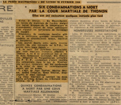 fusillés ou emmenés à Annecy."